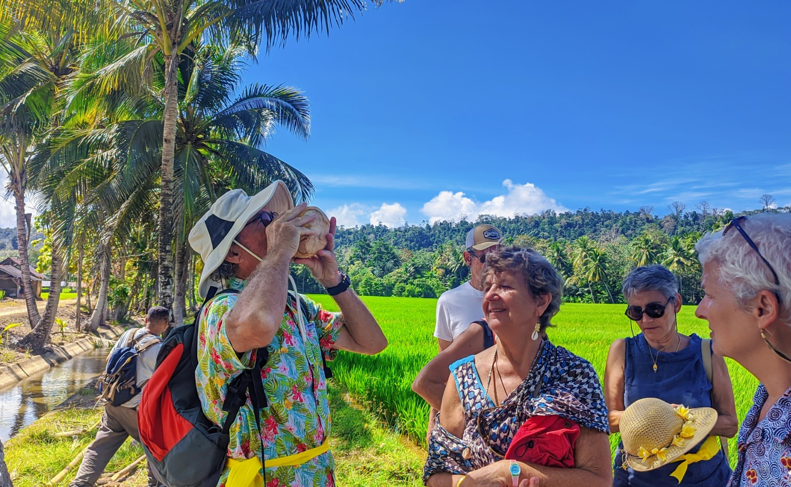 4. Setelah setengah perjalanan, pemandu lokal akan menyuguhkan air kelapa muda segar ditengah persawahan.